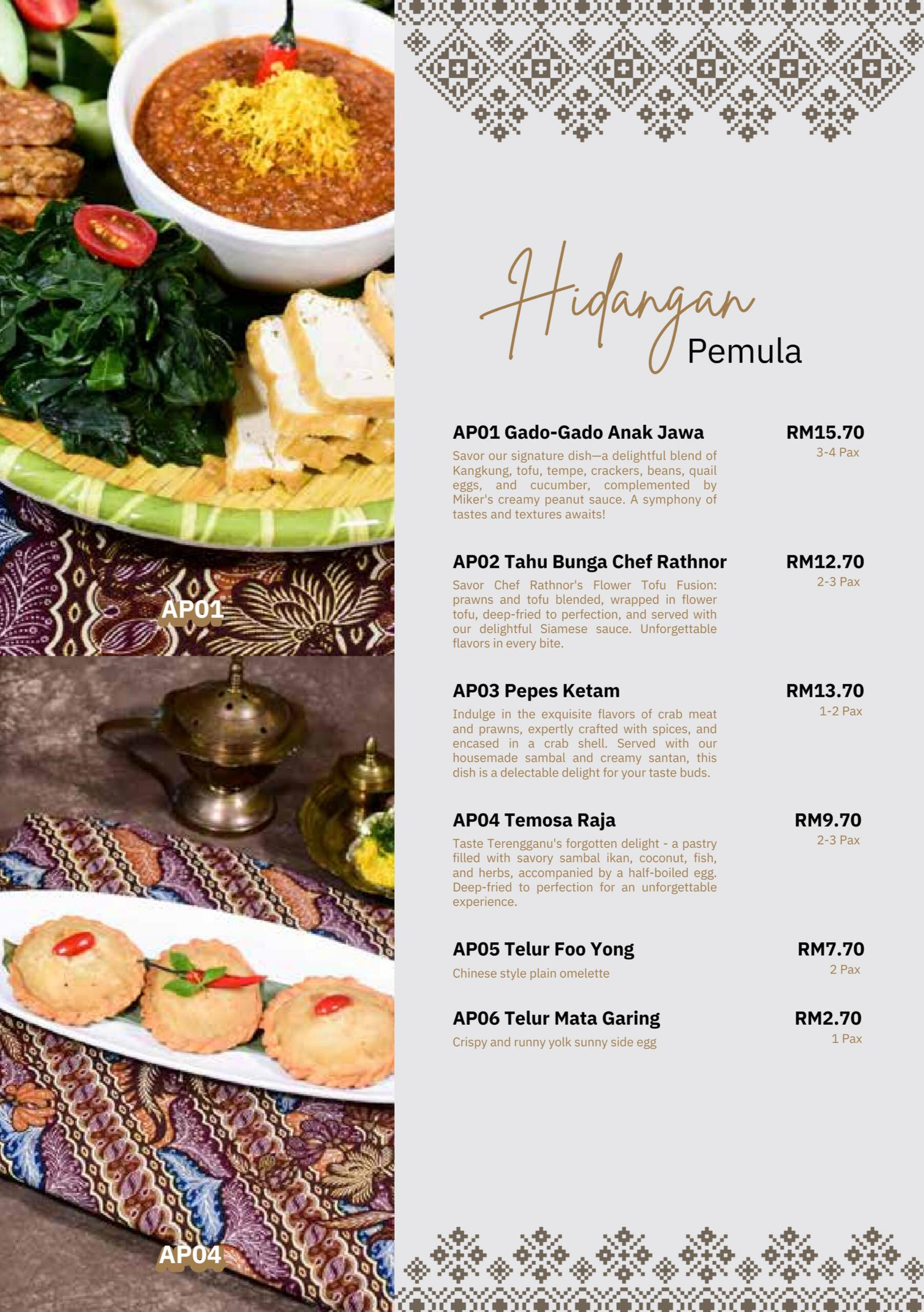 New signature concept of asian dining and great cuisine in the heart of Ipoh. Open in August 2023. Has won multiple awards including world gourmet award 2023 in premium malay dining, has set the standard and cultural food of Perak. With dining of 500 pax capacity private event hall and 100 seating's for diners; surely to cater all hearts of Ipoh.